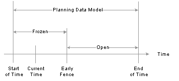 Fences are attributes of a planning model, which you often define when running the Load Planning Instance process (usually by defining an offset time from a base time associated with a plan). The base time is equivalent to the current date time. Unless otherwise specified, offsets are defined in units of days.