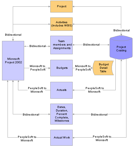 Flow of data between PeopleSoft Project Costing or PeopleSoft Program Management and Microsoft Project 2002