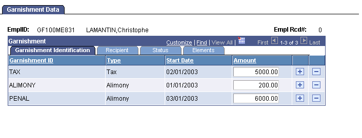 Notice the page title, group box titles, and all of the field labels for this page (HC_GPFR_GAR_DAT_GBL) are user-defined. This page was built by the user in PeopleSoft Application Designer.