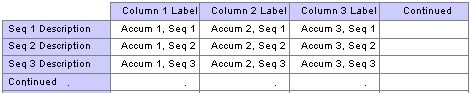 Set up accumulators 4 to 6. There are no Sequence or Description fields because the same sequence number and description applies to all 6 accumulators in the row. |