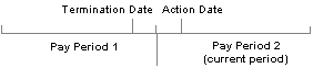 The formula checks for either a termination date in the pay period or a termination action date in the period. It checks for both to accommodate the situation where you may have not entered the termination until the pay period after the period in which the termination occurred. If the check was only on the termination date, the deduction would not be processed because that date would be outside the current pay period begin and end dates.