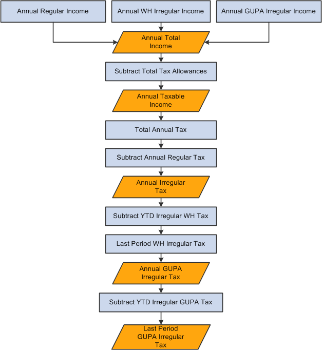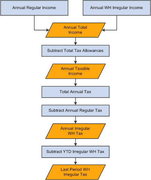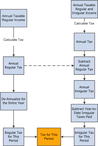 The difference between the two tax calculation methods is in the detailed processing steps, such as annualizing regular taxable incomes, and de-annualizing the total calculated tax.