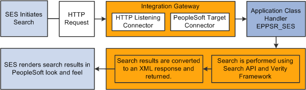 Flow chart showing the path of a search request from Oracle SES to PSSES
