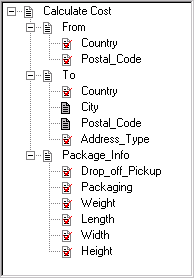 The following example shows the structure of the inputs for the Calculate Cost transaction.