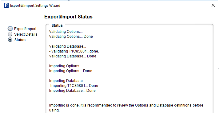 Click Next. On the Select Details page, select if you want to import the options and which databases you want to import.